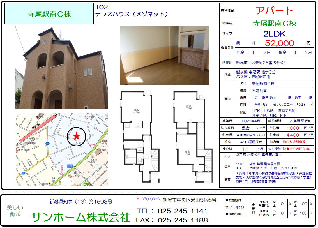 寺尾駅南C102(新潟市西区寺尾26番23号2)2LDK 52,000円